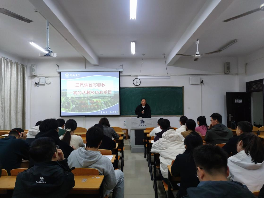 10月17日下午,大数据与人工智能学院邀请了郝涌教授作了题为“三尺讲台写春秋——我的从教经历和感悟”的学术讲座。大数据与人工智能学院全体青年教师在人文楼312教室聆听了讲座,讲座由产业学院院长贾彦茹主持。