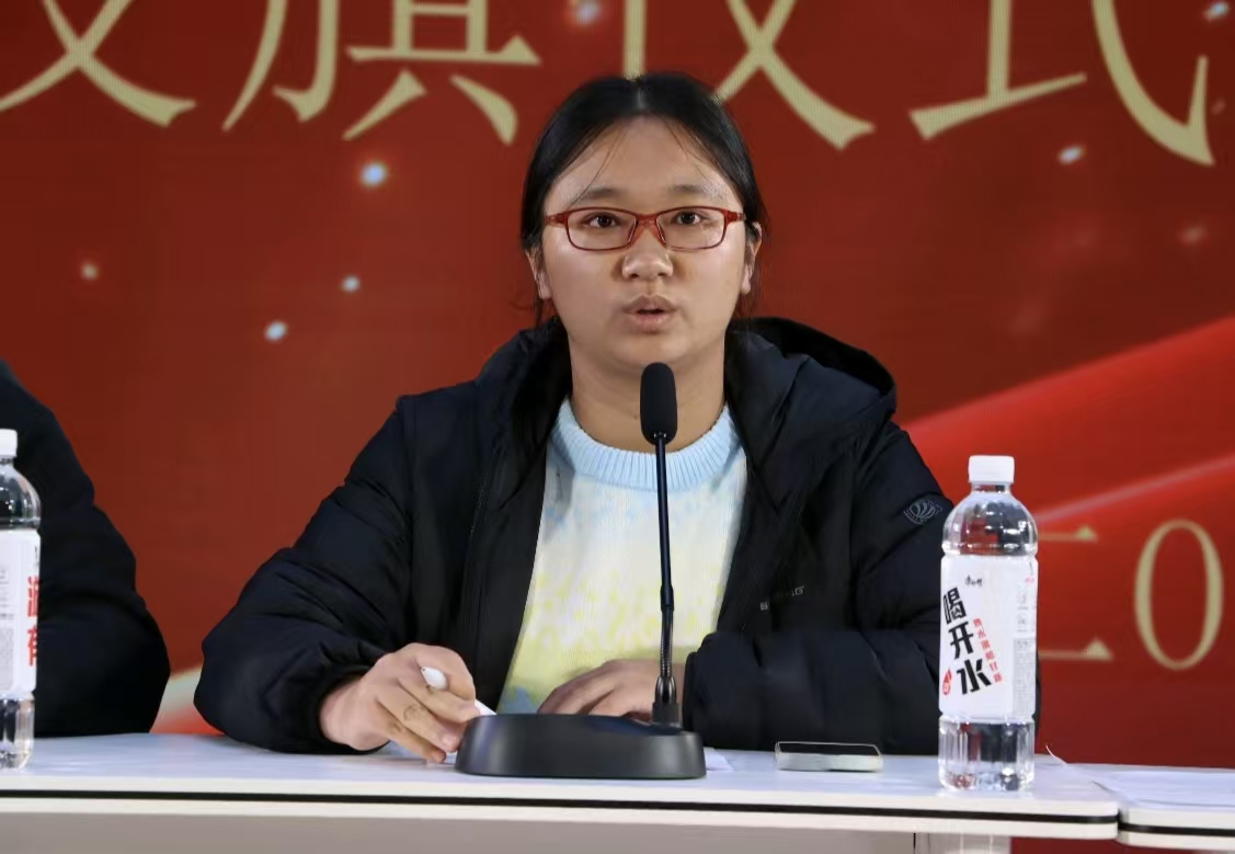 中队长白吉勤向关心队伍建设的老师们致谢,并结合个人从干事到队长的成长历程,分享了知识技能与协调能力的提升。她表示将发挥桥梁作用,助力新成员成长,与全体队员共同践行志愿精神。