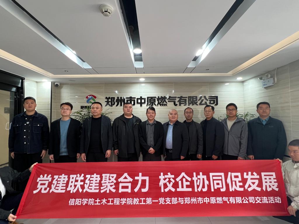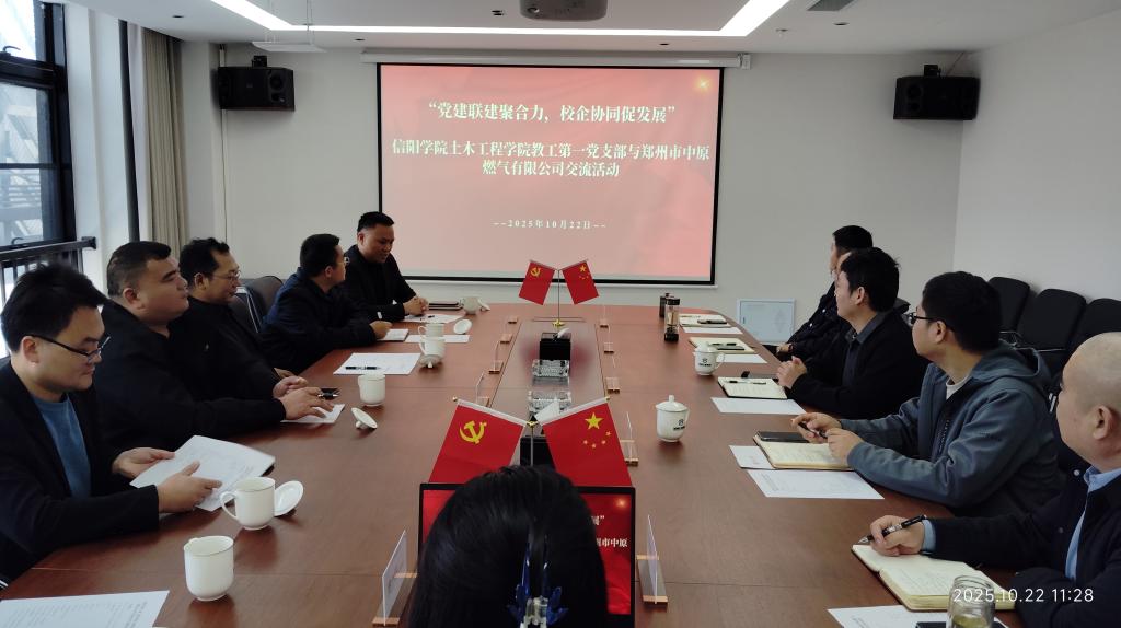 为深入贯彻落实新时代党的建设总要求,推动高校党建与地方企业深度融合,发挥高校样板党支部的示范引领作用,结合郑州公用事业投资发展集团郑州中原燃气有限公司在公用事业、固废处理及服务大众民生等领域的专业优势,10月22日,信阳学院土木工程学院教工第一党支部与郑州公用集团举行党建共建暨产教融合合作交流活动,土木工程学院党总支书记徐远东、教学副院长杨子泉、教学干事王亮、学工干事徐超、河南省教育厅学术技术带头人、教工第一支部书记余沛及智能建造教研室主任黄小林参与交流活动。