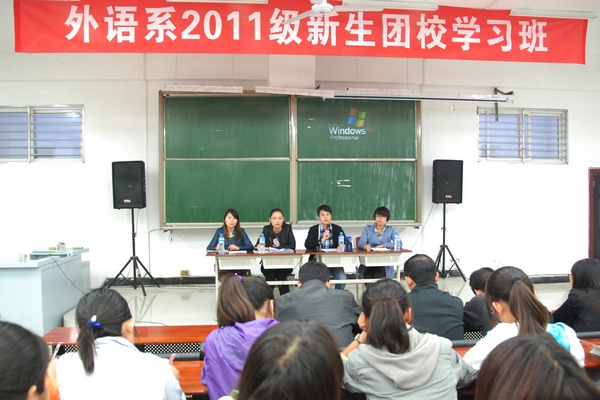 外语系历来高度重视新生团校工作,认真制定了切实可行的培训计划,通过专题讲座、新老生经验交流、分组讨论、实践活动及素质拓展训练等一系列形式多样、内容丰富的培训形式致力于对新生团员中的骨干进行集中培训,使学员成为基层团支部建设的中坚力量,通过团员骨干团结、组织、引导、影响全体新生,不断提高团员青年的责任感和使命感,引导团员在学习和工作中更好的发挥模范带头作用,推进我院团学工作健康发展。