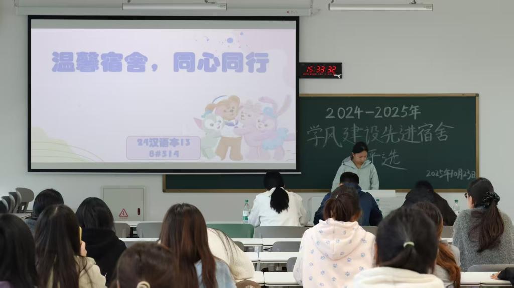 在宿舍评选中,2号公寓520室从学风养成、技能提升等角度,充分展现当代大学生的青春担当。4号公寓520室以创意视频作为开场,记录成员们“向光而行”的成长轨迹,其专业技能提升与宿舍关系建设成效显著。8号公寓514室以“四维建设”(思想、学风、文化、卫生)为框架,通过“学霸窝”“小家园”等特色模块,呈现多元发展的宿舍文化。