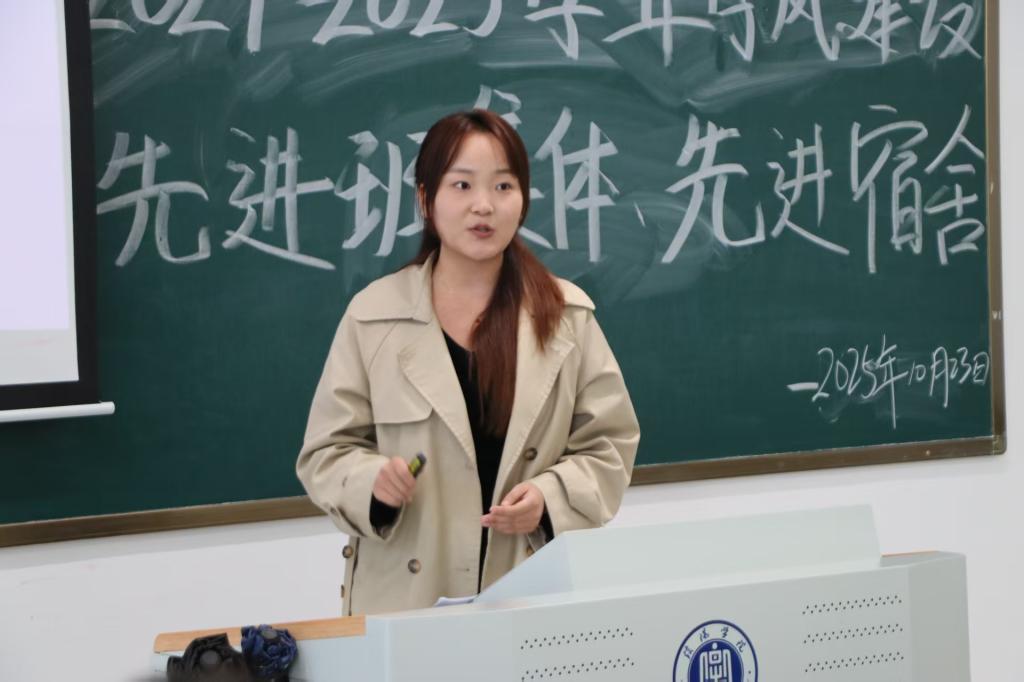 10月24日下午,文学院于教一楼416、418、518教室开展2024—2025学年学风建设先进班集体与宿舍评选活动。2022级汉语言文学本科16班、2023级广播电视编导3班、2024级汉语言文学本科9班等8个班级,以及2号公寓413室、3号公寓417室等63间宿舍参与评选。辅导员项德鹏、李斌、段艳婷担任评委,石锦玉、陈雨晴、王兰基担任主持。