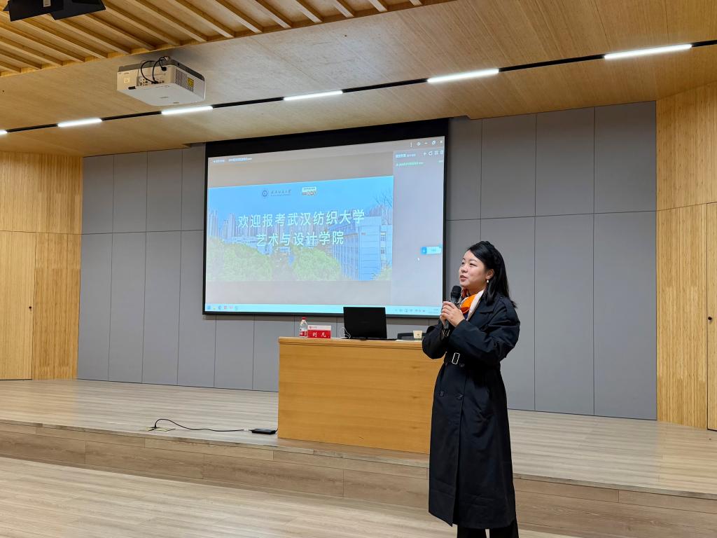刘凡教授以“成功上岸:突破考研升学信息差”为主题,首先向同学们全面介绍了武汉纺织大学及艺术与设计学院的发展历程、学科特色、师资力量、科研平台以及研究生培养成果。她结合多年的研究生招生与培养经验,详细解读了该校相关专业的招生政策、考试科目要求以及研究生阶段的培养方案与资源优势。她鼓励同学们在备考中不仅要夯实专业基础,更要主动了解院校信息,明确研究方向,减少因信息不对称带来的报考盲区。