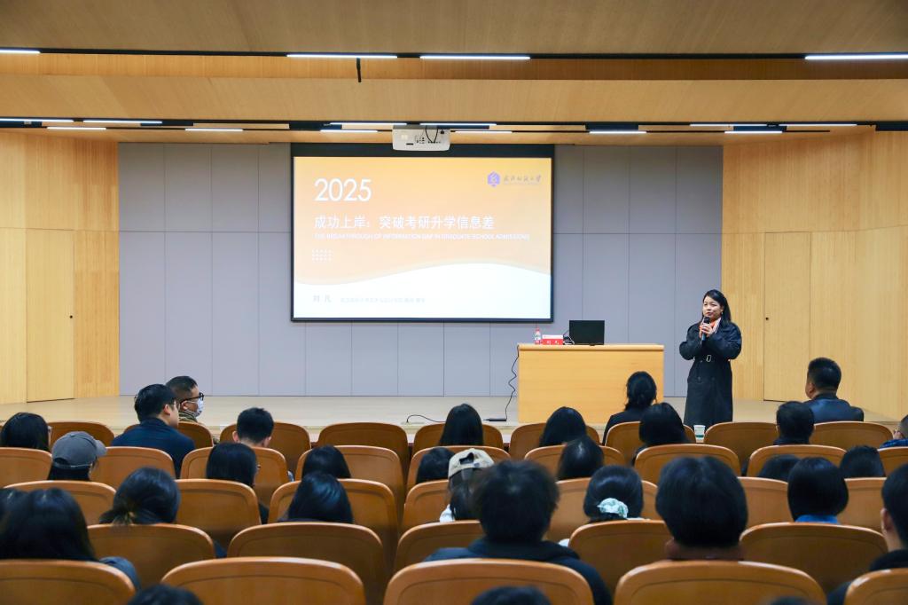 10月24日上午,武汉纺织大学艺术与设计学院副院长、博士生导师刘凡教授应邀莅临我校,在图书馆101报告厅为师生带来了一场题为《成功上岸:突破考研升学信息差》的精彩宣讲。教学副院长王伟、设计类专业师生代表参加了本次宣讲,现场座无虚席,气氛热烈。王伟主持了宣讲会。