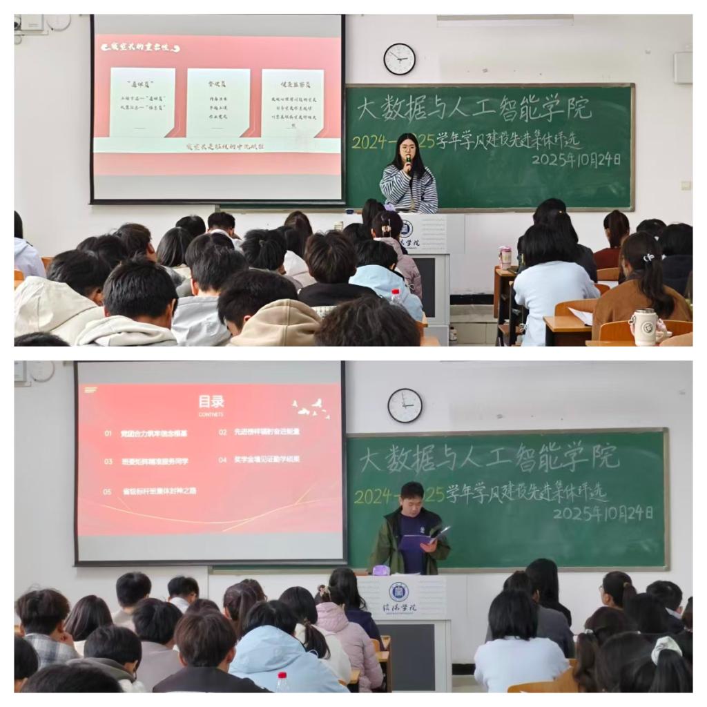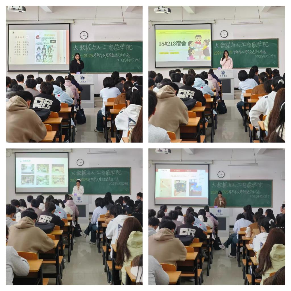 为表彰在学风建设方面表现突出的班集体和宿舍,树立先进典型,营造比学赶超、奋发向上的良好学习氛围,推动学院优良学风的形成,根据《信阳学院关于评选2024—2025学年学风建设先进集体的通知》(校学字〔2025〕45号)文件要求,10月24日下午,大数据与人工智能学院在人文楼115教室开展2024—2025学年学风建设先进班集体和先进宿舍评选活动。全体辅导员和2025级部分学生代表出席此次活动。