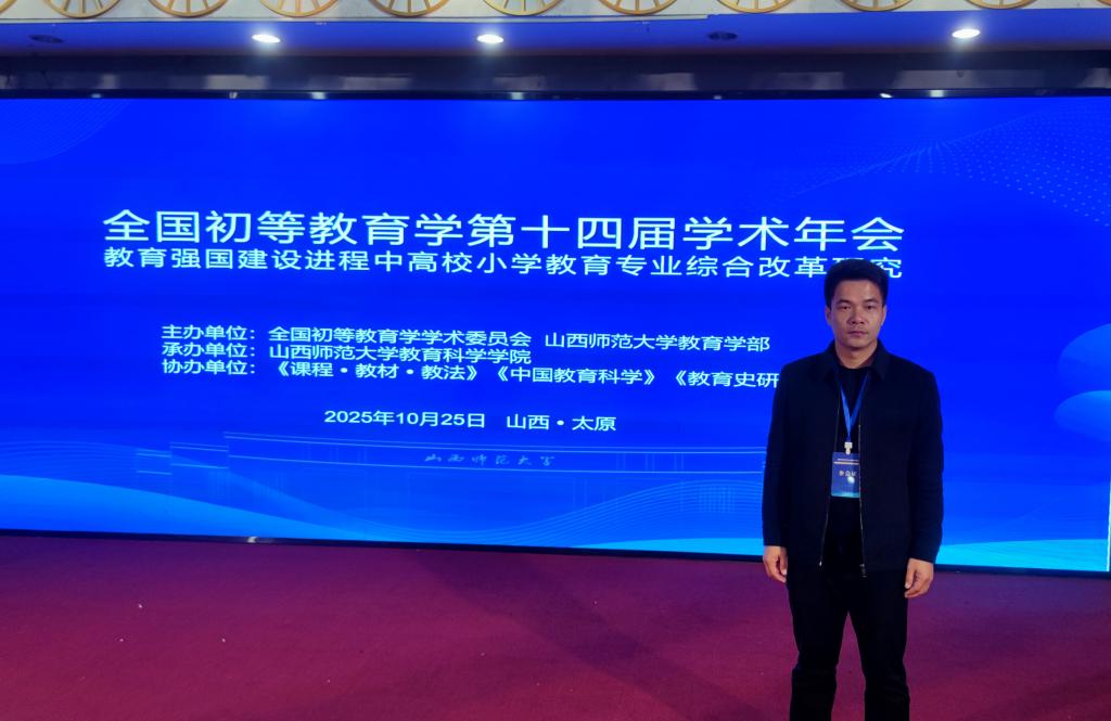 2025年10月24日至26日,全国初等教育学第十四届学术年会在山西太原黄河京都大酒店隆重召开。来自全国多所高校的专家学者齐聚一堂,围绕小学教育专业建设、人才培养、课程创新等核心议题展开深入交流,共话初等教育发展新方向。本次年会聚焦小学教育领域前沿问题,议程紧凑丰富,涵盖开幕式、第七届理事会成立、主题报告、分论坛、研究生论坛及会议总结等多个环节,我院刘海龙老师参加了此次年会。