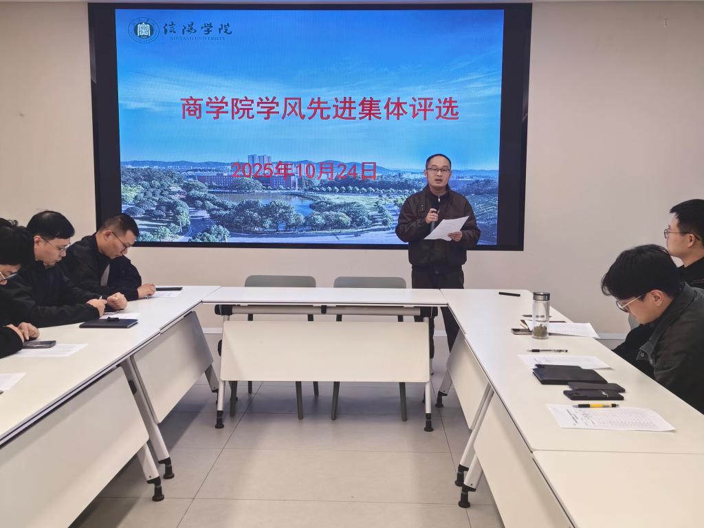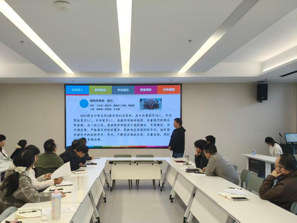 为进一步加强学风建设,营造良好学习氛围,激发学生学习热情,增强班级和宿舍凝聚力,10月24日下午,商学院在教三楼530会议室举办学风建设先进集体评选活动。商学院学工干事花端阳出席,会议由团总支书记乔梁主持,全体辅导员担任评委,各参评班级和宿舍代表参加了此次活动。