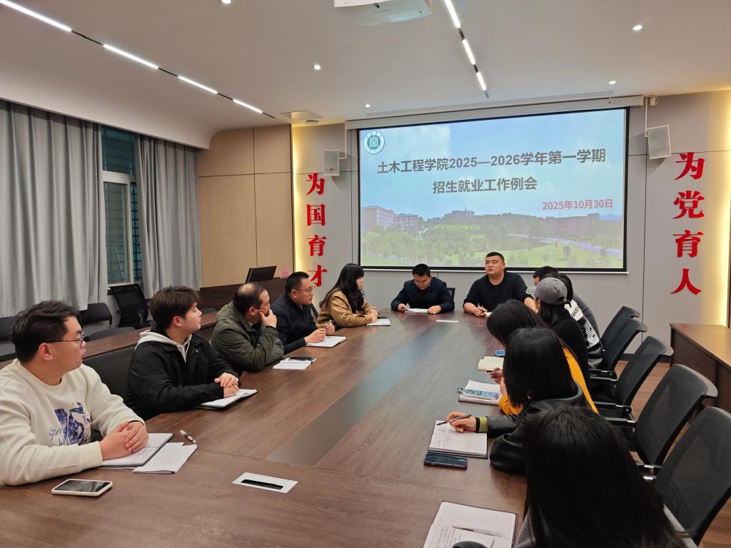 为认真贯彻落实学校关于促进毕业生就业创业工作部署,10月30日,土木工程学院2026届毕业生就业创业工作例会在理工楼112会议室召开,学院党总支书记徐远东、学工干事徐超、团总支书记徐飞以及全体辅导员参加了会议。