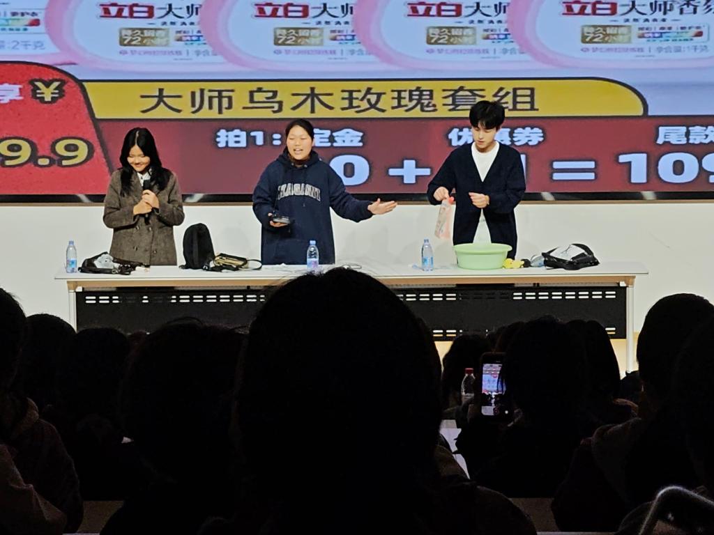 开场播放了英语俱乐部宣传视频及部长自我介绍视频。往届优秀配音选手带来《青春变形记》片段配音,以流利的口语与饱满的情感赢得全场掌声;周子程、杜珂欣等同学以抖音直播为场景的英语秀,用鲜活的表达让现场同学身临其境。