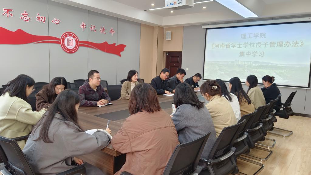 为深入贯彻落实河南省关于学士学位授予管理的相关要求,进一步规范学院学士学位授予资格审核与授予全流程工作,切实筑牢学位授予质量防线,日前,理工学院组织开展《河南省学士学位授予管理办法》专题学习研讨会。学院领导班子、任课老师、学工队伍及学生群体分多次参与学习,推动管理办法精神落地生根。