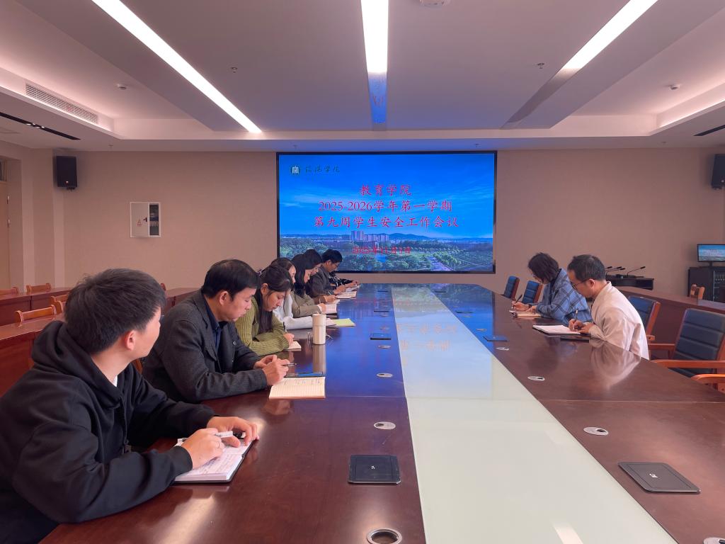 为不断提升学生管理工作质效,夯实校园安全稳定根基,11月5日,教育学院在教三楼521召开第九周学生安全工作例会。党总支书记刘颖方、学工干事胡超及全体辅导员参加会议。