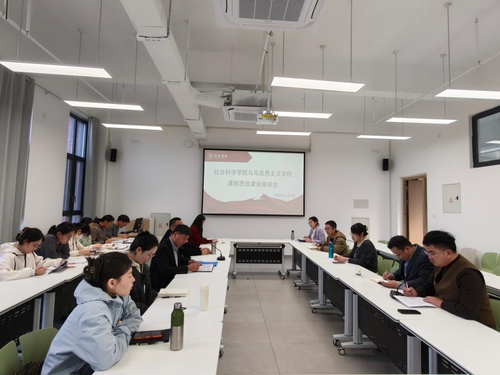 为深入落实立德树人根本任务,推动历史学科课程思政建设提质增效,促进跨学科协同育人,11月4日下午,社会科学学院课程思政建设专题座谈会在南湖校区教二楼 509 会议室召开。马克思主义学院党总支书记陈金强,张俊忠副教授,骨干教师冯忆、赵田田、邓雪蒙;我院党总支书记胡志国、教学副院长寇博文及历史学教研室全体教师共同参会,会议由文星豪主持。本次座谈会围绕历史学科课程思政与思政课程的联动融合展开深度研讨,凝聚育人共识。