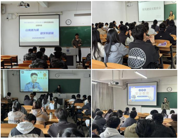 主题班会靶向破题,筑牢思想成长根基。兼职班主任锚定学生成长需求与学院育人重点,每月精准策划主题班会,聚焦学风建设、安全防护、心理疏导等关键领域精准发力。从“数智专业学习方法论”的经验分享,到“网络安全与信息保护”的案例解析,再到“青春赛道的心理调适”的互动交流,每场班会都紧扣学生关切,真正成为赋能成长的加油站与思想引领的“主阵地”。