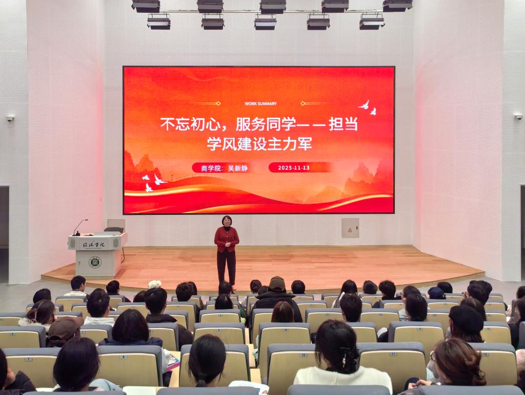为强化学生干部责任意识、提升服务能力与履职实效,充分发挥其在学风建设中的骨干引领作用,11月13日晚,商学院在教三楼005教室举办2025年秋季学期首期学生干部培训会。此次培训以“不忘初心,服务同学——担当学风建设主力军”为主题,由商学院副院长吴新静主讲,全体学生干部积极参与,现场学习氛围热烈、互动交流踊跃。