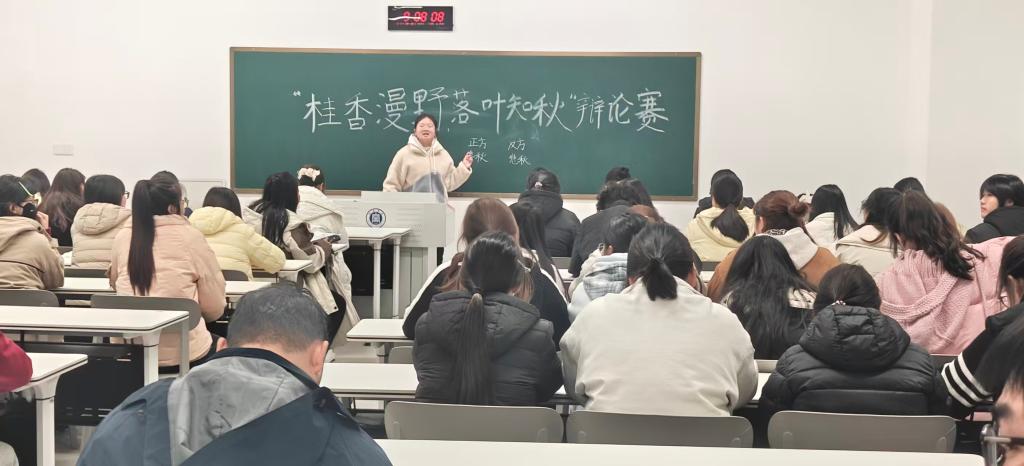活动前期,学子积极响应,踊跃报名。本次辩论赛以“秋之底色”为核心议题,呼应秋日“鲜活热烈”与“沉静内敛”的多元特质,既有“我言秋日胜春朝”的明快赞颂,亦有“凄凄惨惨戚戚”的清寂感悟,让每一种对秋的解读都能被听见、被尊重。