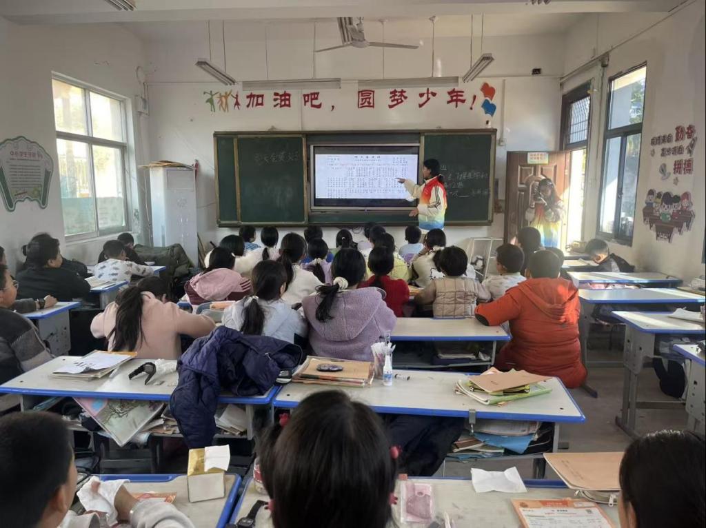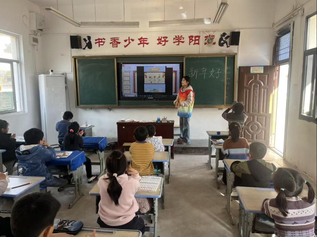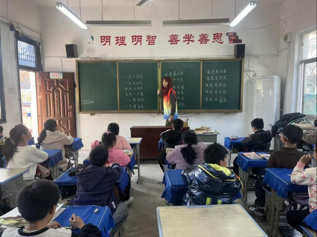 本次授课对象为一、三、五三个年级。一年级的授课内容为《新年好》,这首传统的民间歌谣简单轻快的旋律,让同学们感受节日欢快的气氛。三年级学习的《国家》,通过欢快的节奏,让孩子们联想到欢快的音乐氛围,体会到深厚的爱国情怀。五年级的授课内容为《明天会更好》,通过老师一句一句地教孩子们唱歌,传递积极向上的信息,表达了对未来的期望和向往。