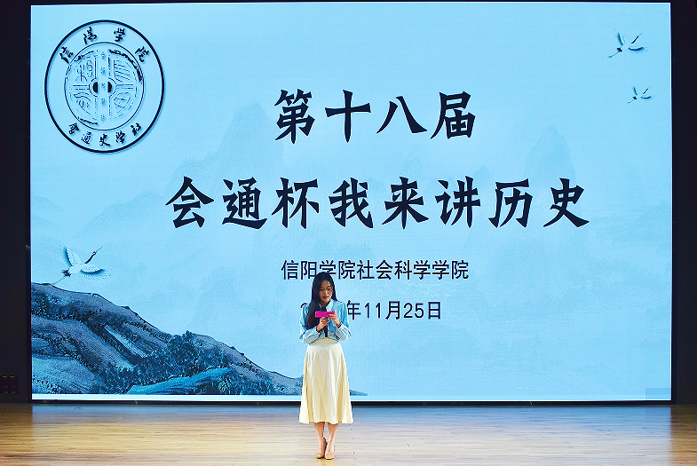 11月25日下午,由社会科学学院主办、会通史学社承办的第十八届“会通杯”“我来讲历史”决赛,在南湖校区教一楼113演播厅圆满落幕。本次比赛邀请社团指导老师代晓丽、鲁晨龙,以及历史学教研室孙闯、厉芳艺、曹惠、袁珍、陈功林、刘研六位教师共同担任评委,来自各级各专业的190余名同学到场观看,共同见证这场兼具知识性与感染力的历史盛宴。