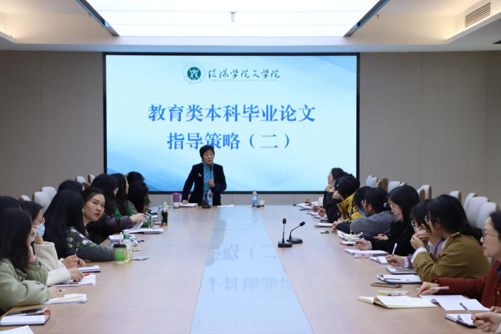 为提升教育类论文指导质量,11月25日下午,文院特邀教育学院蔡梅、刘爽两位教师,于教一楼406会议室开展题为《教育类本科毕业论文指导策略(二)》专题讲座。文学院院长张凌江,及全体无授课任务的教师参加。