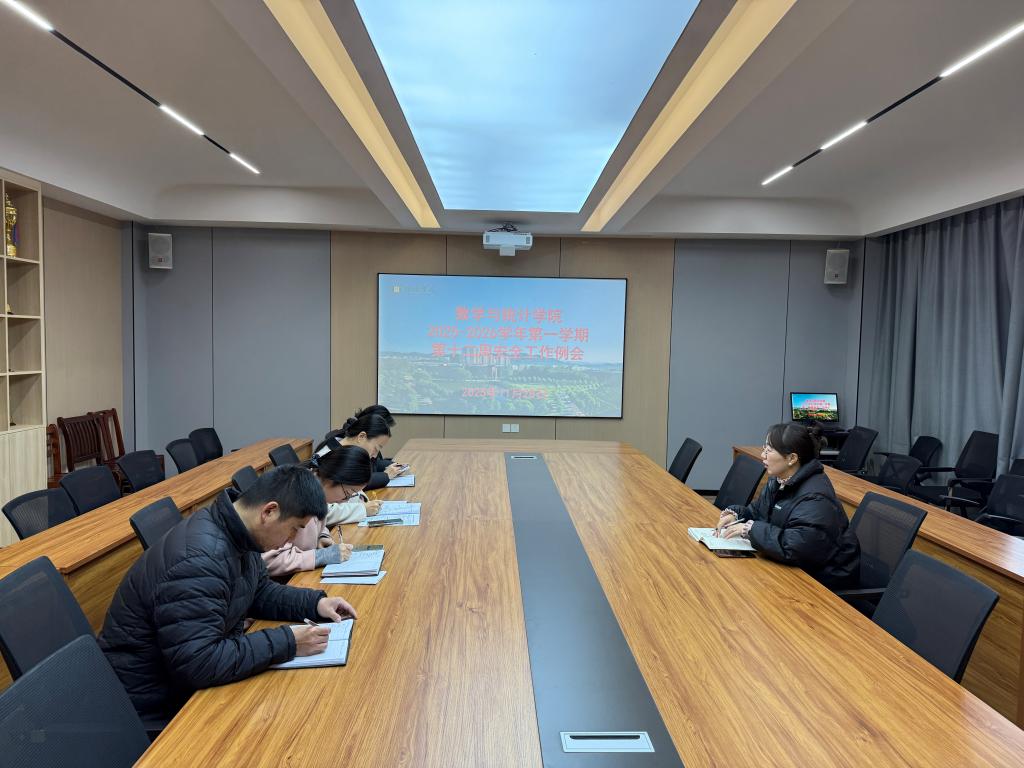为切实做好学生安全管理工作,11月28日上午,数学与统计学院在社科楼419会议室召开2025—2026学年第一学期第十二周学生安全工作例会,学院学工干事田媛及全体辅导员参加会议,会议由田媛主持。