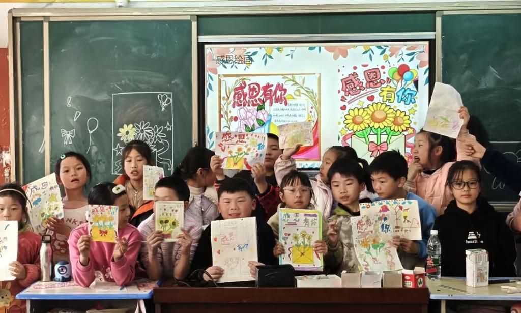 为弘扬感恩美德,践行美育使命,11月28日,美术与设计学院组织青年志愿者走进飨堂小学,开展“怀恩绘暖,笔传微光”美育浸润支教活动。