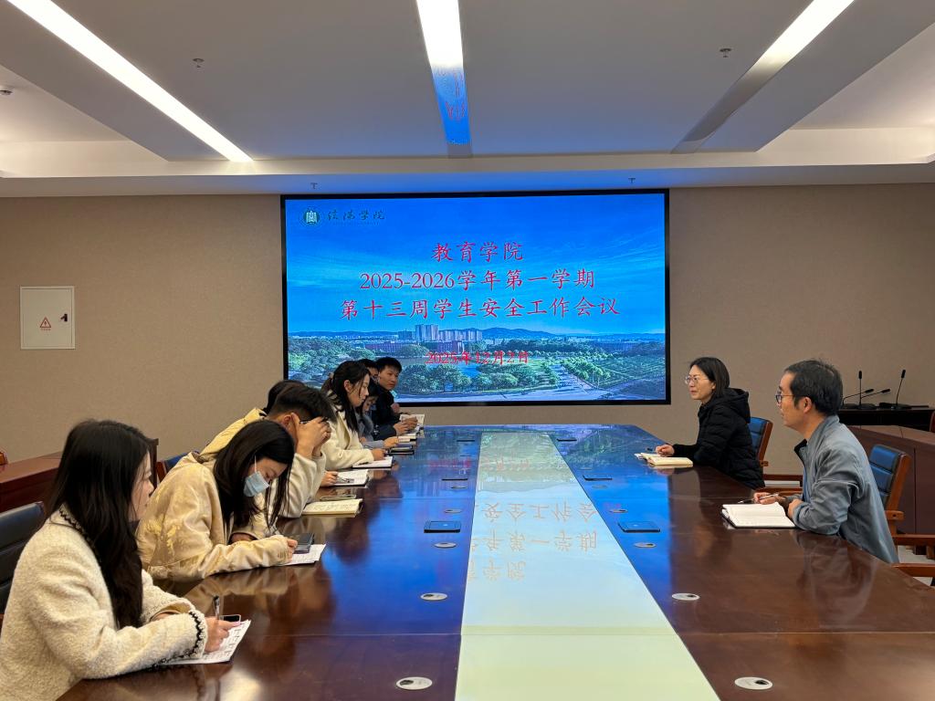 为持续巩固学院学生管理成效、压紧压实安全责任体系,12月2日,教育学院在教三楼521会议室召开本学期第十三周学生安全工作例会。党总支书记刘颖方、学工干事胡超及全体辅导员参加会议。