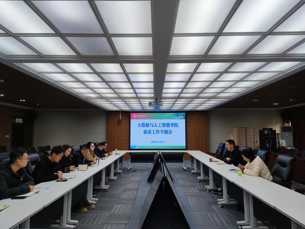 为深入贯彻学校就业工作总体部署,积极应对当前严峻就业形势,切实推进2026届毕业生高质量充分就业,大数据与人工智能学院于12月1日组织召开毕业生就业工作专题推进会。院长邬长安、党总支书记高昌慧、教学副院长毛凤翔、产业学院院长贾彦茹、教学干事徐良、学工干事鄢杰、负责就业、实习等工作的老师和辅导员,以及科大讯飞驻校负责人参加了会议。会议由院长邬长安主持。