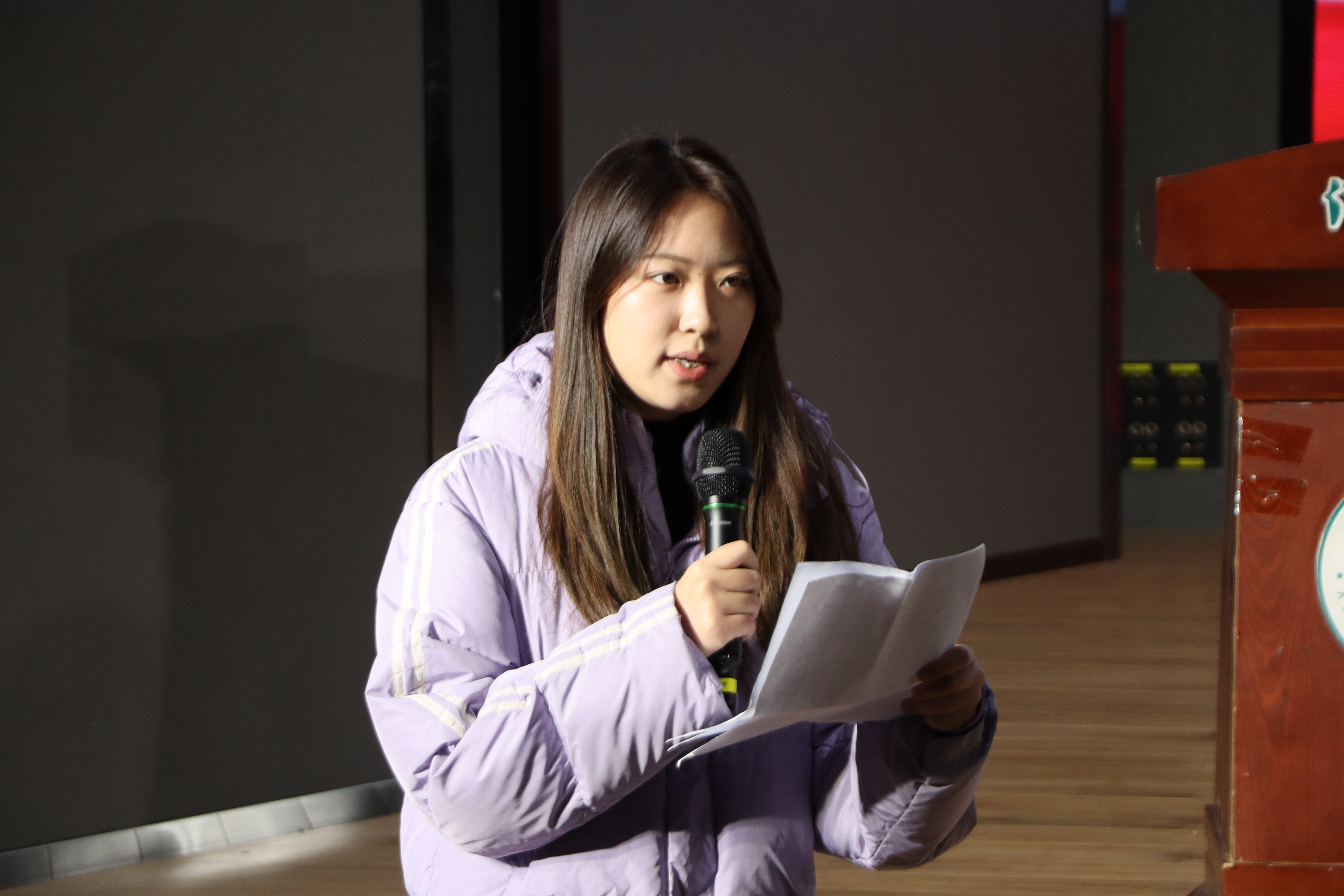 活动伊始,文学院第十八届主席团团总支副书记高雅同学上台发言。她首先向老师们给予的全方位关怀,以及同学们在备考路上的温暖陪伴表达诚挚谢意。随后,她回顾了考研冲刺阶段的点点滴滴,分享了这段时光里的付出与成长,并以“守得云开见月明”的信念鼓舞同伴,呼吁大家不因途中的困难轻言退缩,不因阶段性的成绩骄傲自满,要始终以饱满的热情奋力拼搏,以从容的自信的心态迎接考试,坚信坚持终将收获硕果。
