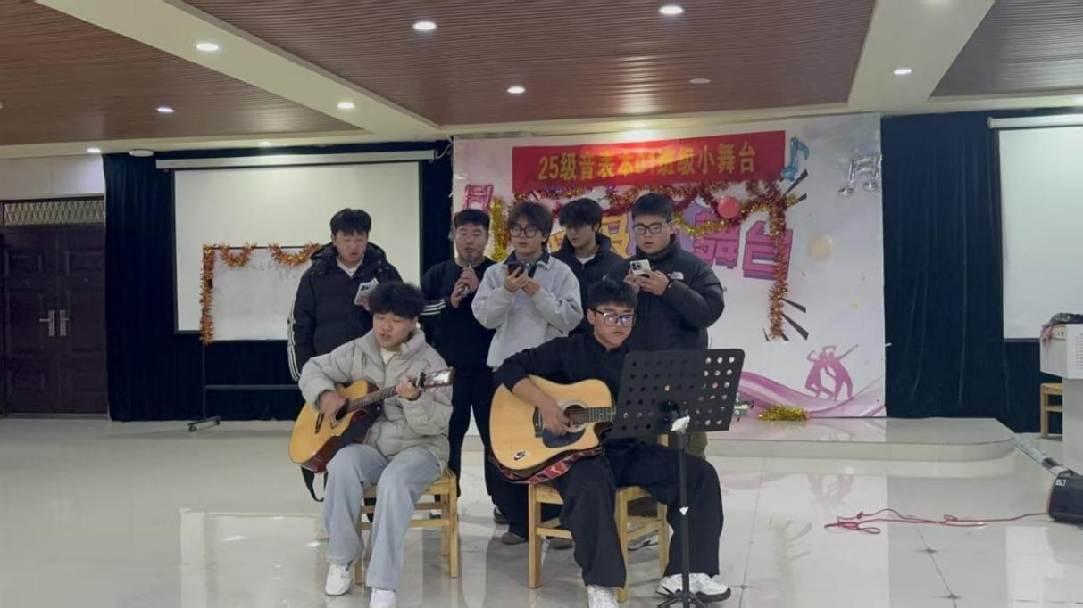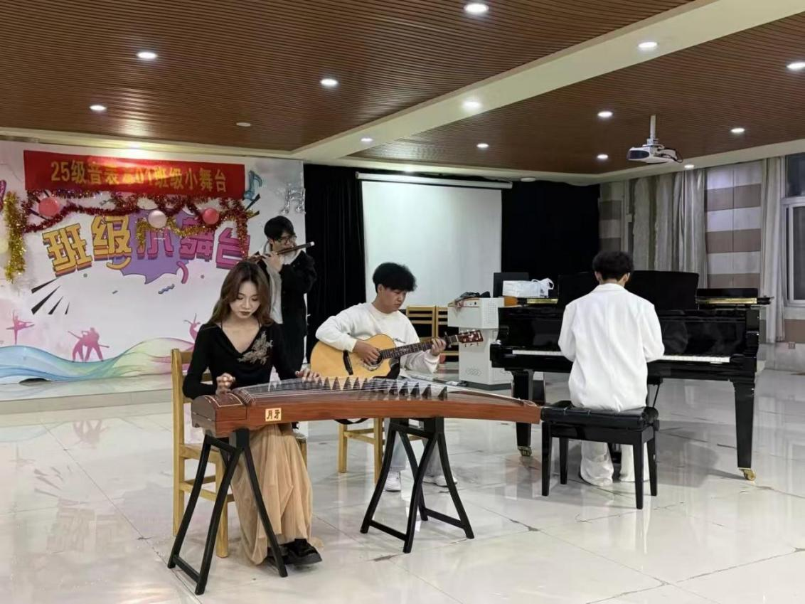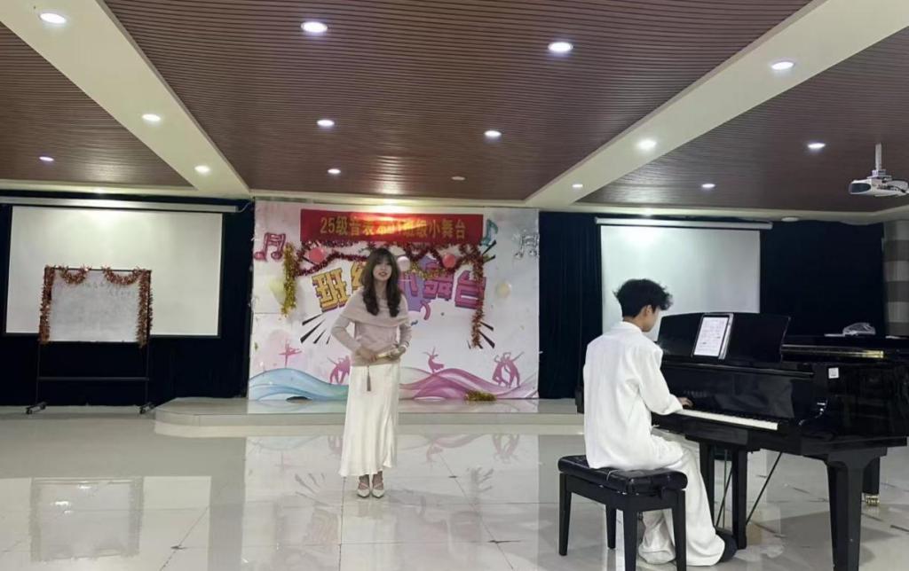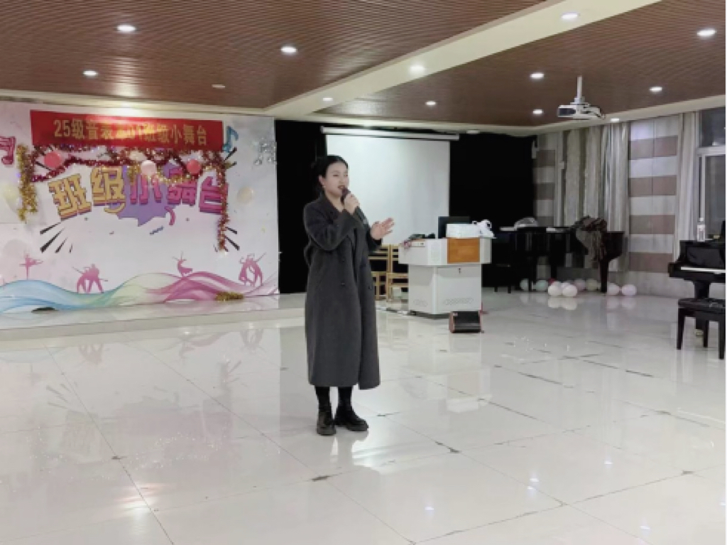 为丰富校园文化生活,营造积极向上的学习氛围,提升学生的舞台实践能力,12月8日晚,2025级音乐表演本科01班在艺术楼201教室举办“班级小舞台”专业实践演出活动。学院辅导员姚垚到场指导并与同学们共同观看了演出。