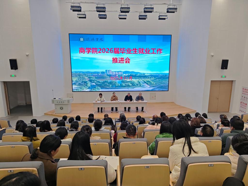 凝心聚力促就业,赋能青春向未来,为深入贯彻学校关于毕业生就业工作的决策部署,扎实推进2026届毕业生高质量充分就业,12月10日,商学院在教三楼005教室召开2026届毕业生就业工作推进会。商学院党政领导班子及全体教师参加会议。会议由商学院党总支书记胡秀云主持。