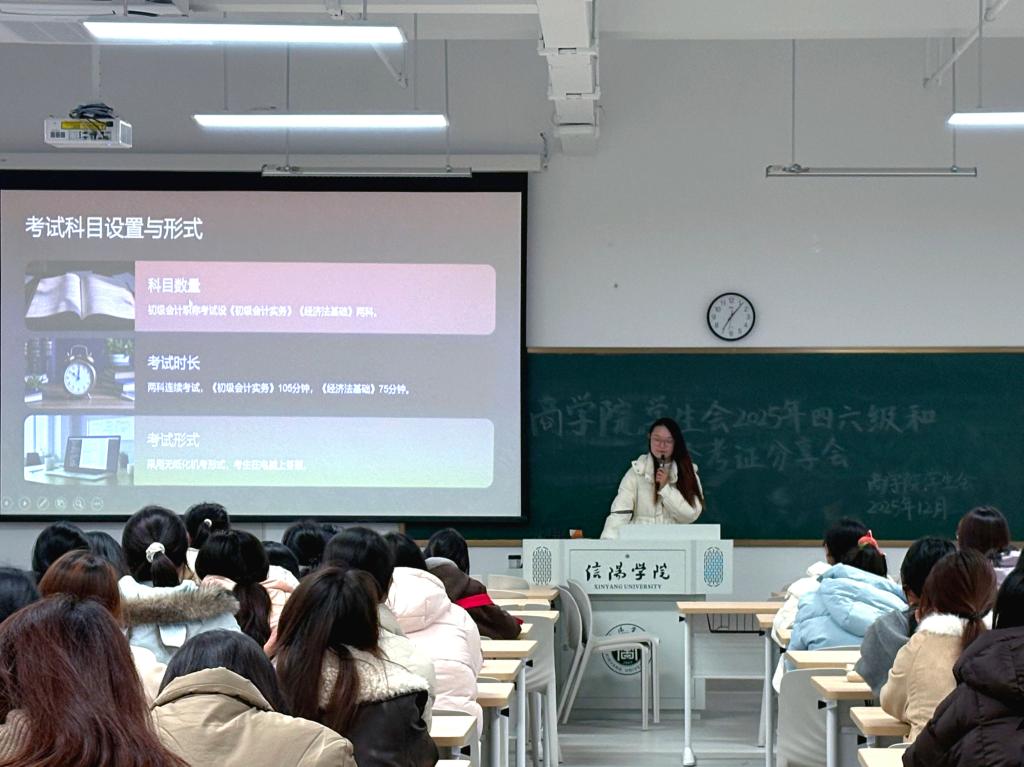 为进一步深化学风建设,帮助同学们明晰考级考证方向,掌握高效备考方法,充分发挥优秀学子的榜样引领作用,12月11日,商学院在教三楼422教室举办“青春榜样说”优秀学子成长分享会。活动特邀2024级优秀学长学姐,以经验分享、现场答疑形式,为2025级学子传经送宝、答疑解惑。