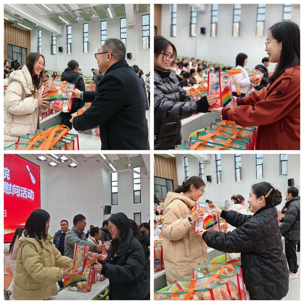 活动伊始,何珊珊介绍了出席本次考研慰问活动相关的领导和老师,并由全体老师为同学们送上“考研加油包”。学院精心准备了巧克力圈、鱿鱼条、奶棒面包、AD钙奶等礼品,寓意有了研途的刻苦努力,才有考场的游刃有余,预祝考生们成绩棒棒的,上岸笑哈哈。每一份礼物都让冬日里备考的学子们感受到学院和老师们的关心与关爱,更为同学们能继续坚持到最后增添了动力和信心。
