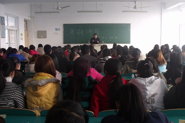 11月9日,数学与计算机科学系考研社团邀请系主任郝涌教授在教二楼409教室作了考研辅导讲座。指导老师黄封林和考研社团百余名同学聆听了讲座。