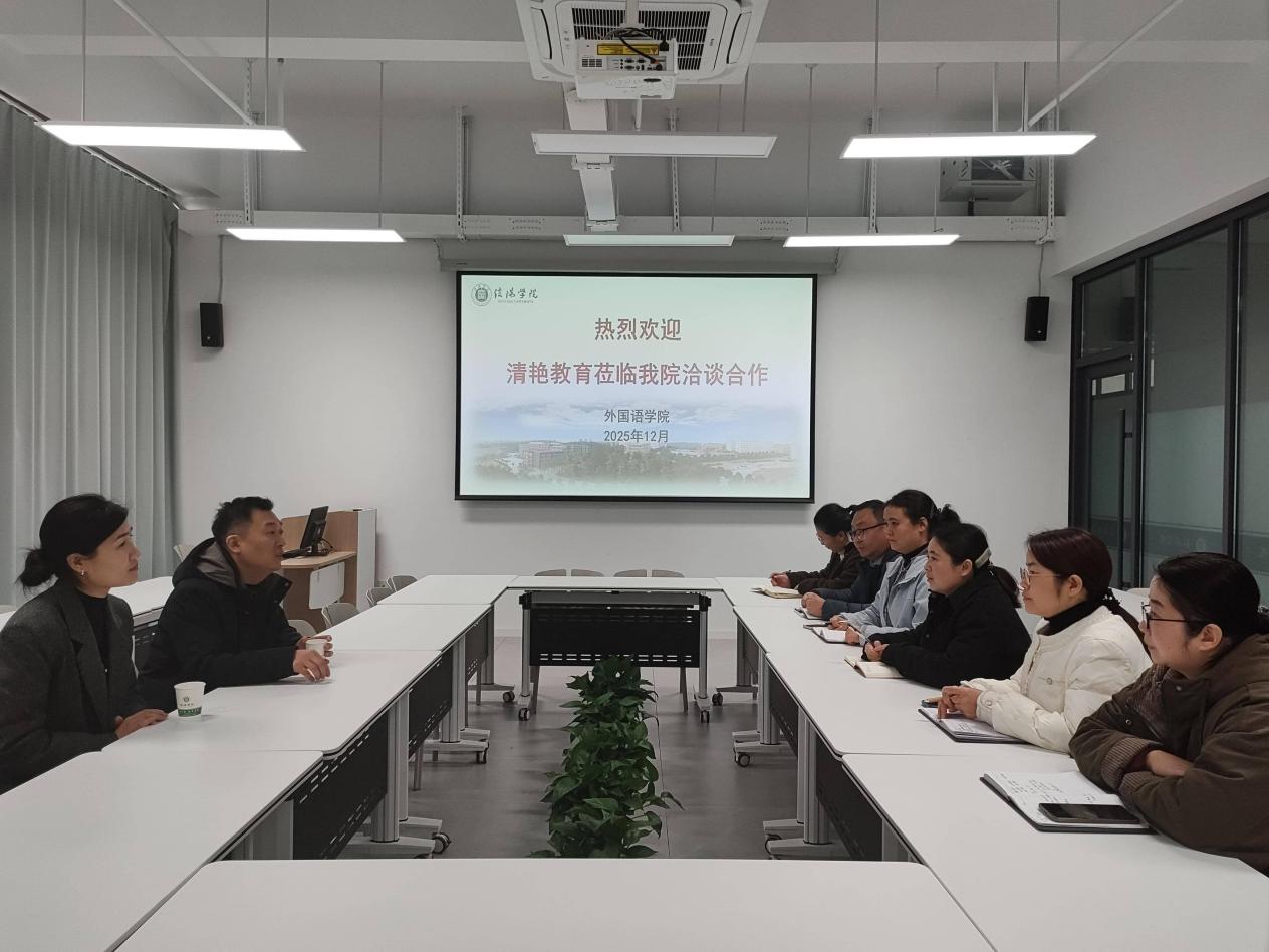 12月15日,外国语学院开展访企拓岗专项行动,杭州清艳教育科技有限公司人事经理李钰峰一行莅临学院座谈,双方围绕人才培养、校企合作等议题深入交流,达成系列合作共识。
