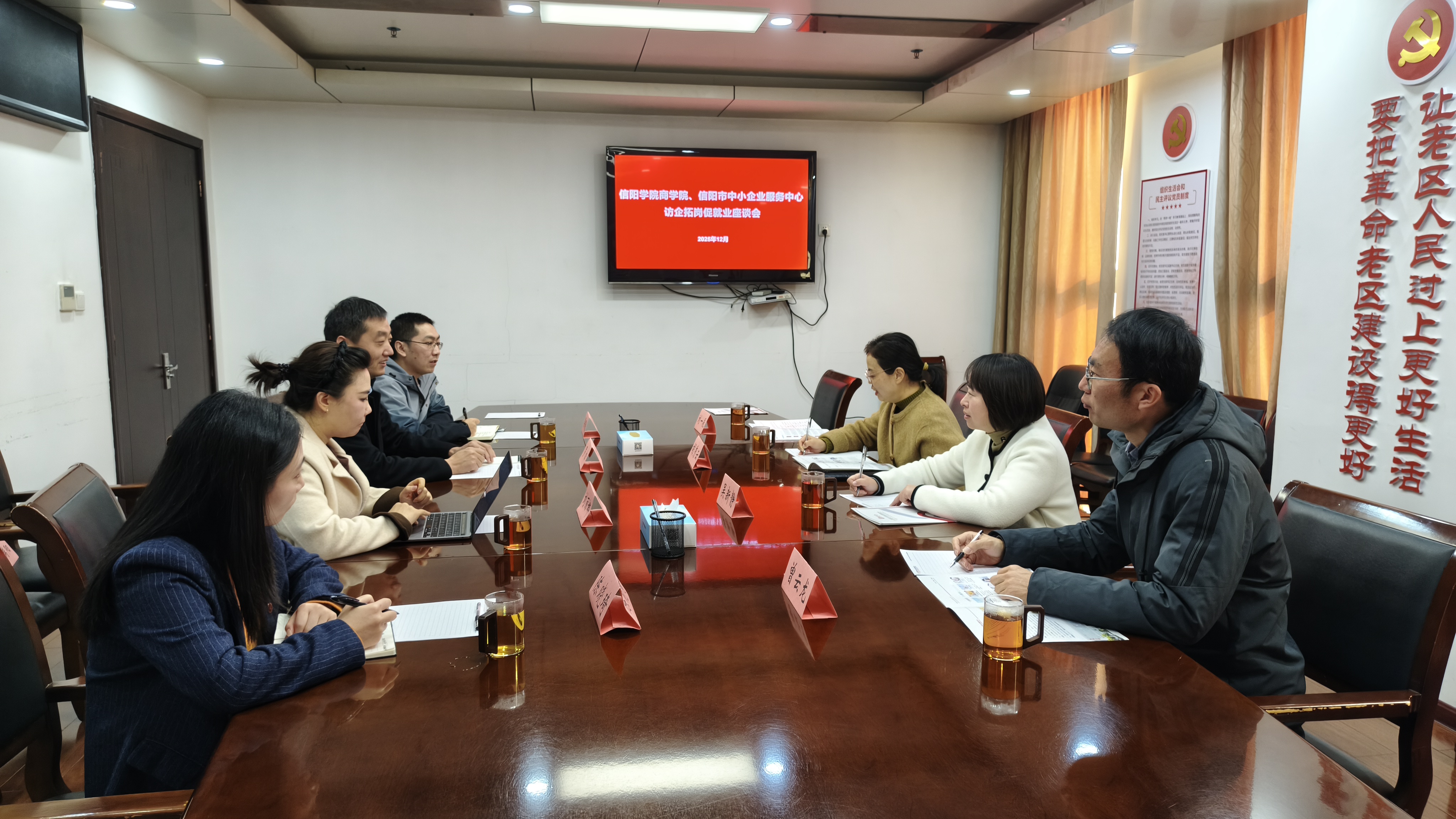 为进一步深化校企协同育人机制,探索产教融合创新路径,助力学生高质量就业,12月12日,商学院党总支书记胡秀云、副院长吴新静、财务管理教研室教师曾云龙和就业专干刘一辰一行前往信阳市中小企业服务中心开展“访企拓岗促就业”活动,受到企业负责人罗松及相关部门骨干的热情接待。