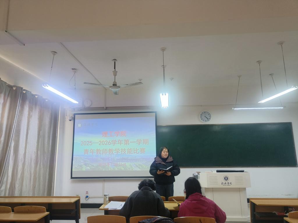 12月16日下午,理工学院2025—2026学年第一学期青年教师教学技能比赛在理工楼402、403、405、407、408教室顺利举行。比赛分五组,由姚素梅教授、王秀丽教授、曹国廷副教授、张小玉副教授、杜来林副教授分别主持。此次比赛旨在推进课堂教学改革与创新,切实提升青年教师教学水平,为青年教师搭建展示与交流的平台。