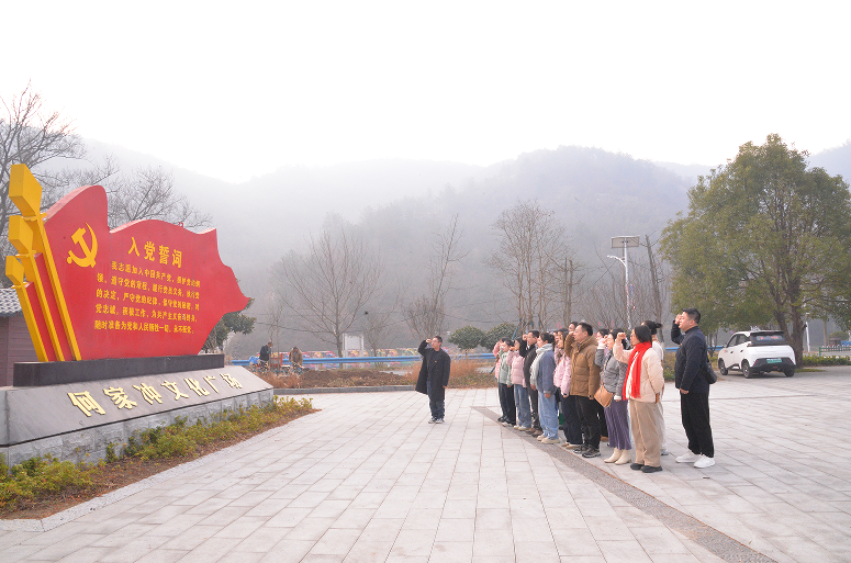 参观学习结束后,全体党员在何家冲文化广场整齐列队,面向鲜红的中国共产党党旗,举起右拳,由党总支委员、教工第二支部书记寇博文领誓,集体重温入党誓词。“我志愿加入中国共产党,拥护党的纲领,遵守党的章程……”铿锵有力的誓言回荡在广场上空,既是对革命先烈的深切缅怀,也是对党的忠诚承诺,更是对初心使命的坚定坚守。通过重温誓词,全体党员再次接受了深刻的党性教育和精神洗礼,进一步坚定了理想信念,增强了责任感和使命感。
