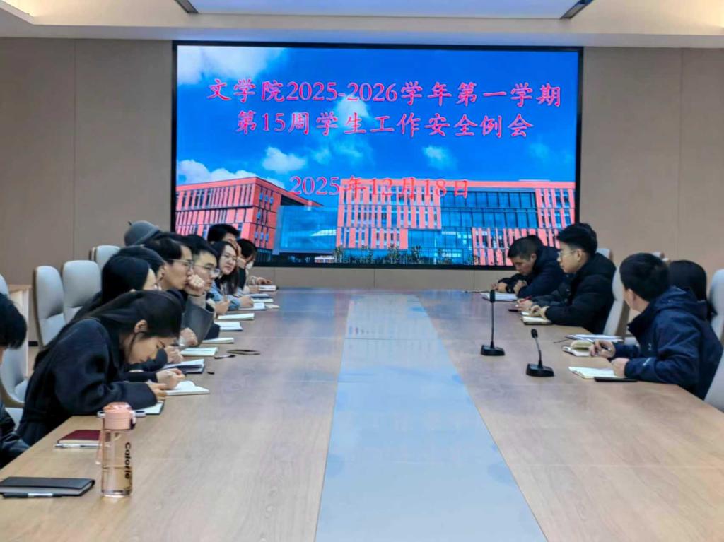 为切实筑牢学院安全防线,保障学期末各项工作平稳推进,2025年12月18日,文学院组织召开2025—2026学年第一学期第十五周安全工作例会,由学工干事何军华主持,全体辅导员参会。