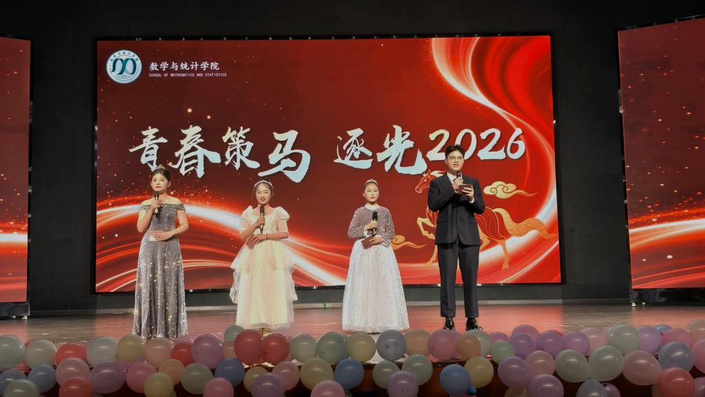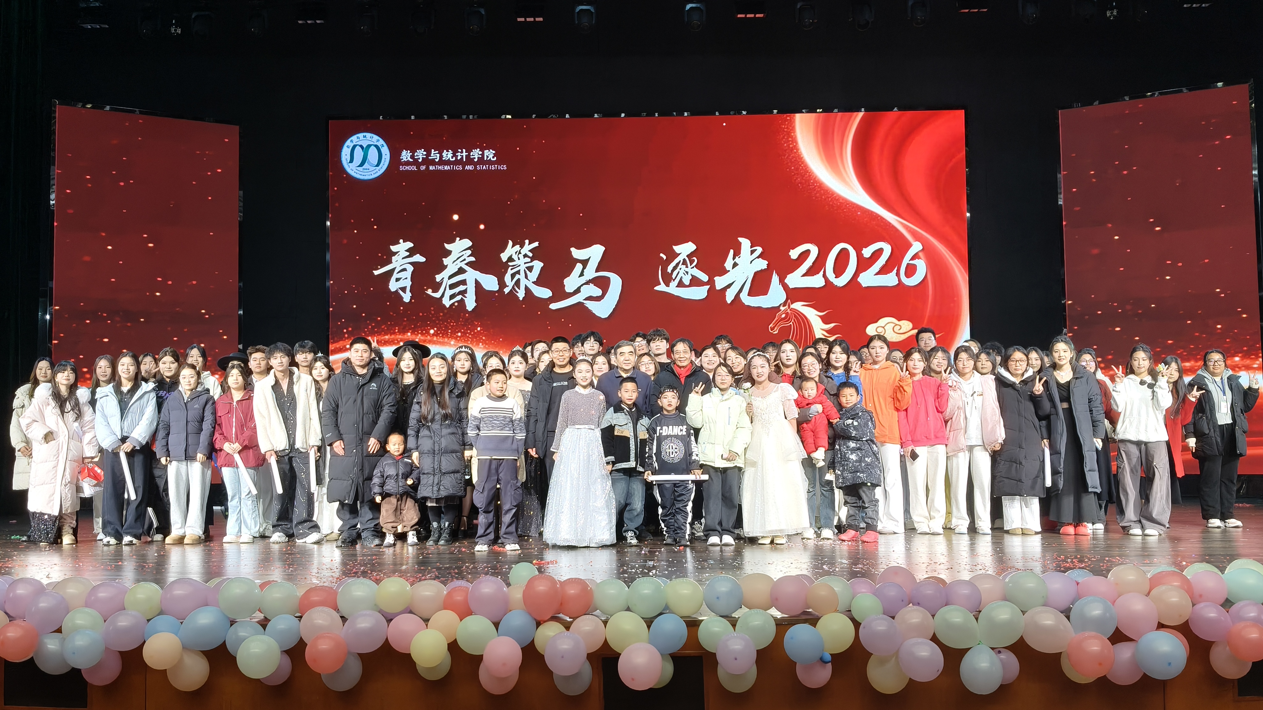 歌声与舞步交织,欢笑与温情共融。12月21日晚,数学与统计学院“青春策马 逐光2026”元旦晚会精彩开演,学院院长俞迎达、党总支书记郭二军、学工干事田媛、行政干事闫珍珠等班子成员与教师、学生代表欢聚一堂,以多元舞台表演共迎新年。