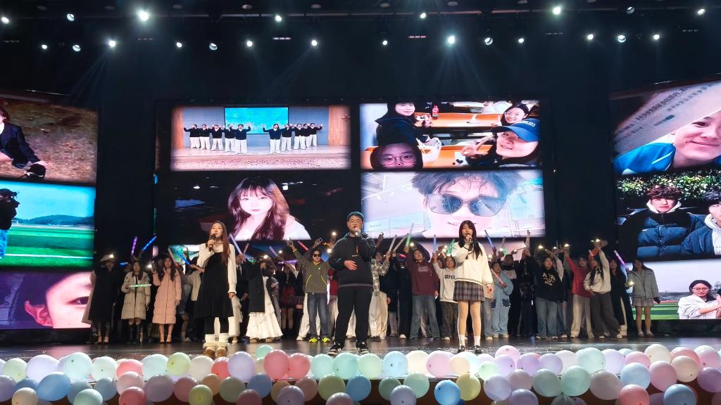 “逐光奔赴”篇章中,吉他弹唱《成都》旋律悠扬,小品《体检警告》以趣味形式传递健康理念,2024、2025级班长带来的“班长舞”默契满满,最终全场合唱《我们的明天》,在温暖歌声中为晚会画上句号。