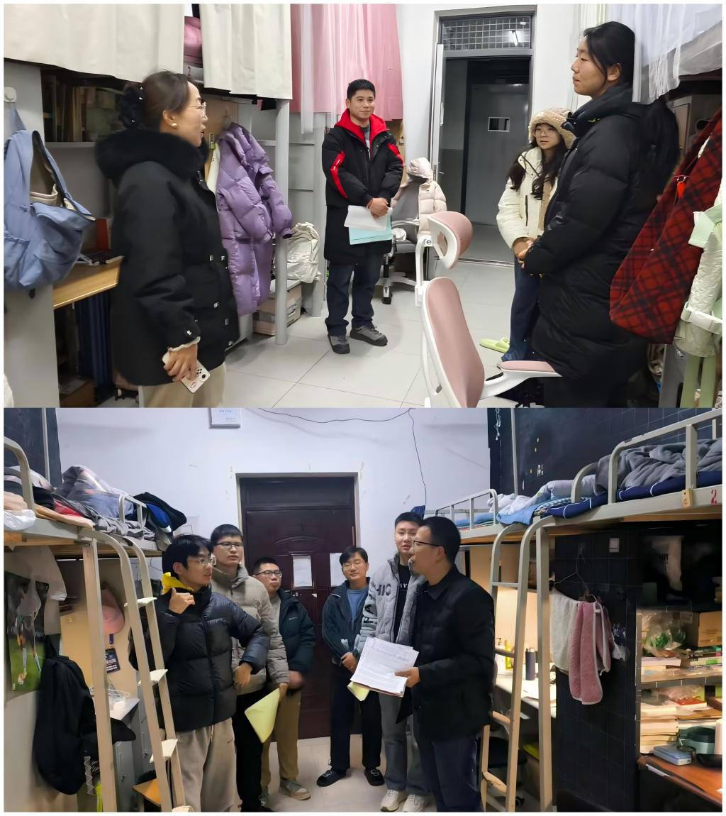 为进一步筑牢校园安全防线,精准掌握学生思想动态与学习生活状况,切实做好期末关怀服务工作,12月24日,数学与统计学院学工干事田媛、全体辅导员深入学生宿舍开展期末走访慰问活动。