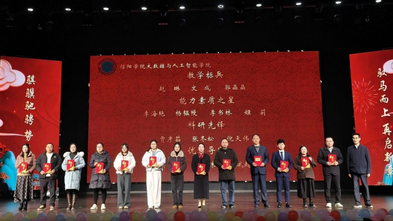 晚会中段举行了隆重的颁奖典礼。学院领导依次上台,为过去一年在教学科研、学生工作、学科竞赛等方面取得优异成绩的师生代表颁发了奖项,表彰他们在各自领域取得的优异成绩,树立先进典范,激励全院师生见贤思齐。