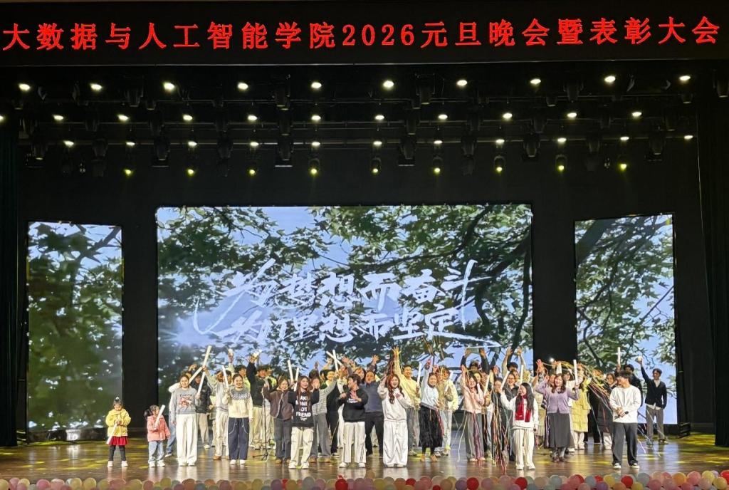 本次元旦晚会不仅是一场视听盛宴,更是一次生动的育人实践和校园文化集中展示。它生动诠释了大数据与人工智能学院“数智启新,元启未来”的主题,营造了学院团结和谐、积极向上的氛围,进一步增强了师生的归属感与凝聚力。全院师生将以此次晚会为新的起点,以更加饱满的热情和昂扬的斗志,共同迈向充满希望的2026年。