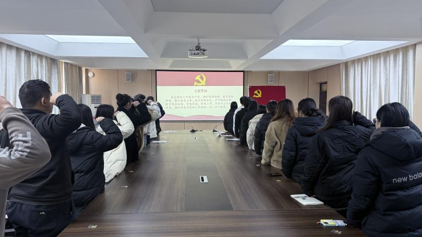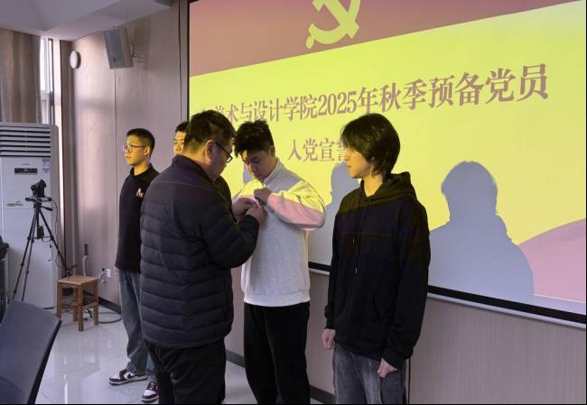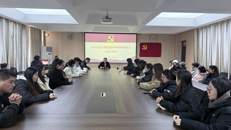 为做好党员教育管理工作,增强新发展党员的党性修养,美术与设计学院于12月26日在艺术楼215会议室举行2025年秋季学期新发展党员入党宣誓仪式。学院党总支委员、学生党支部书记、全体预备党员、入党积极分子参加了活动。仪式由组织委员李静主持。