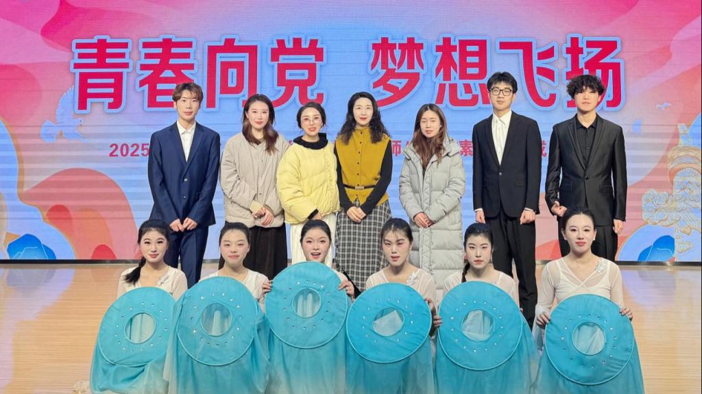 为深入推进校地协同育人,检验教育实习实践成效,12月26日,音乐学院副院长杨辉应邀带队相关教师赴信阳市羊山中学(东校区)参加的“青春向党,梦想飞扬”2025年师生综合素质教育成果展。