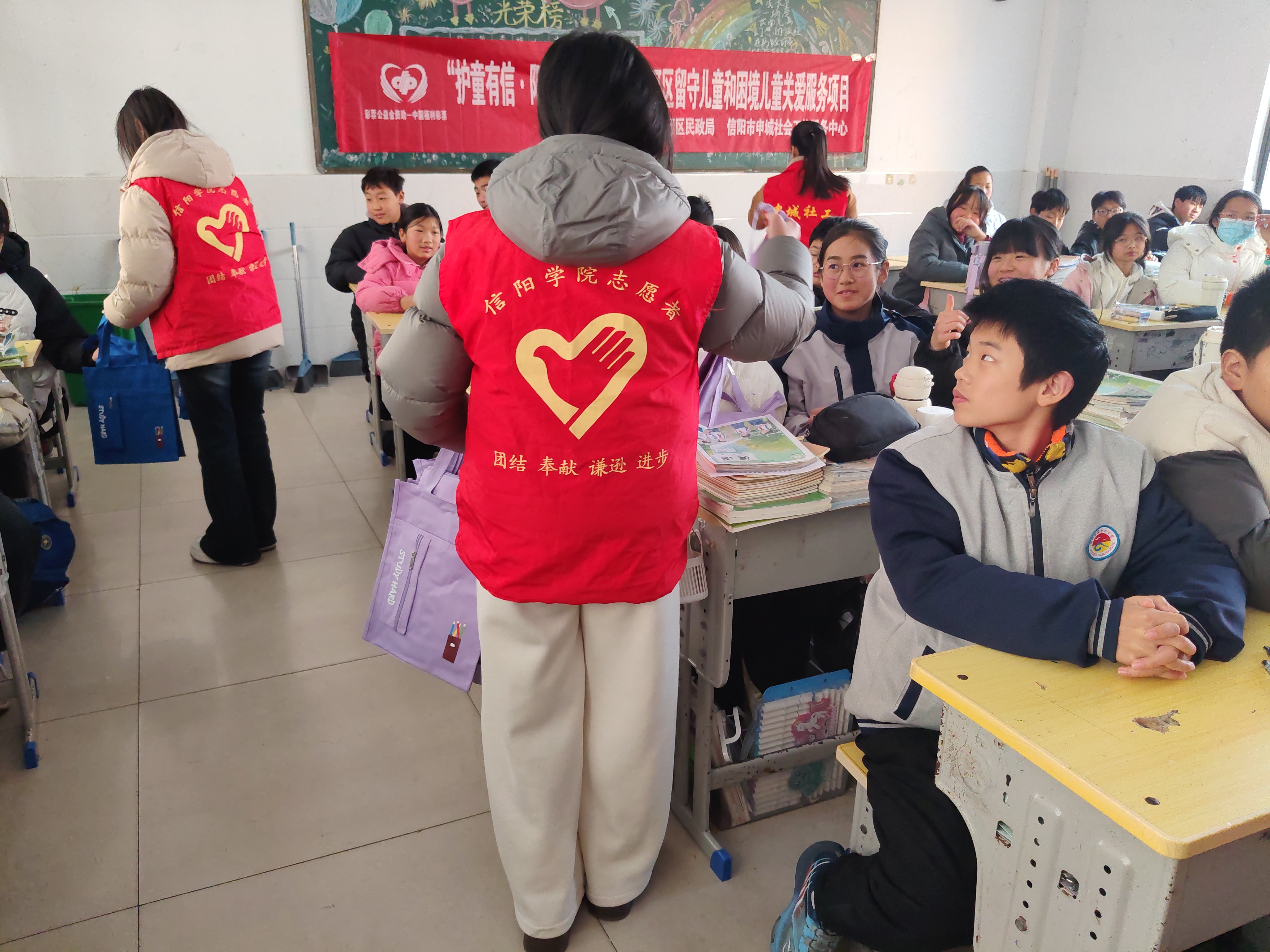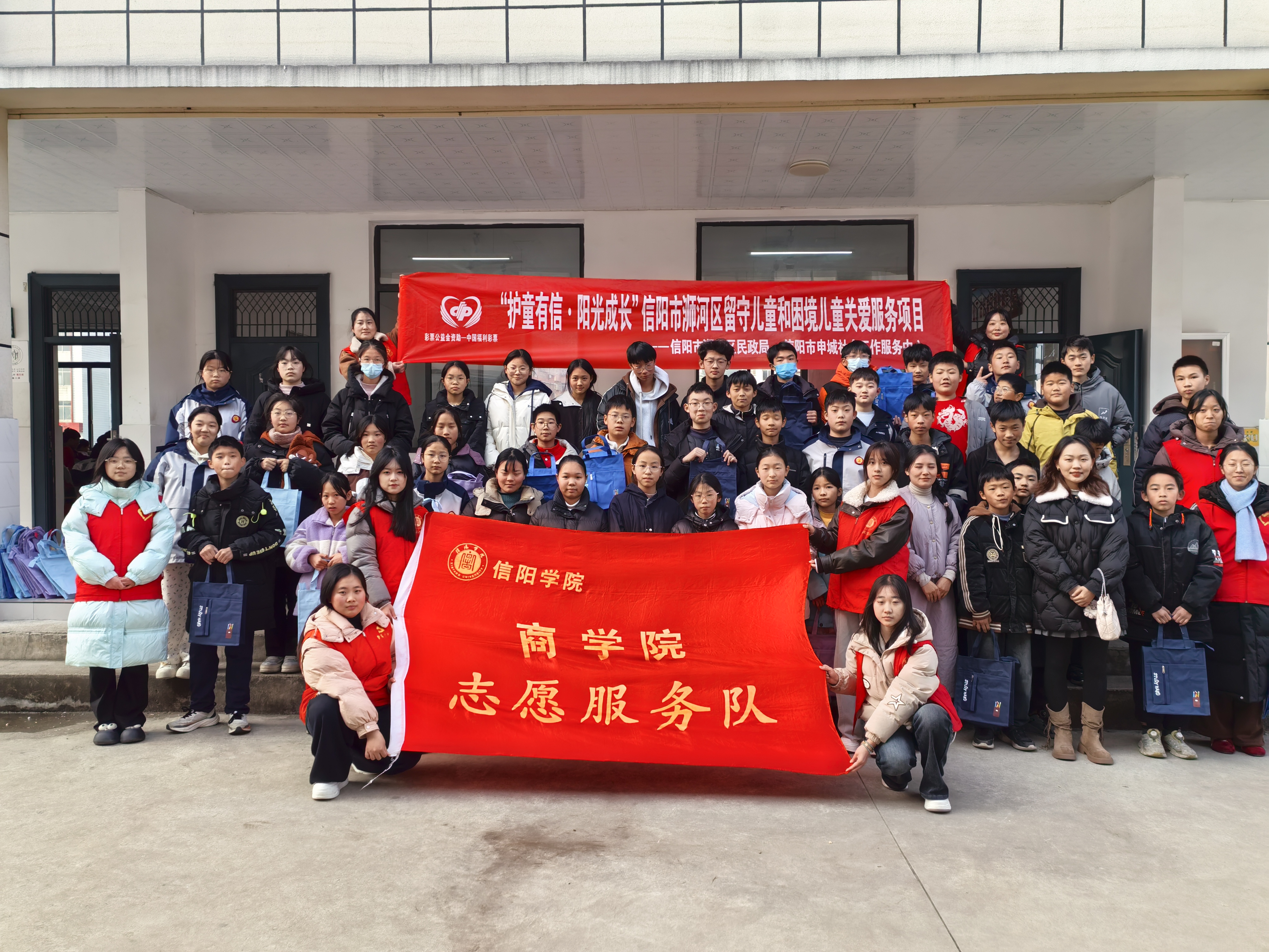 12月29日下午,商学院志愿服务队走进信阳市金牛山办事处中心学校,开展以“护童有信,阳光成长”为主题的关爱留守儿童志愿活动,用实际行动为孩子们送去温暖陪伴与心灵慰藉。