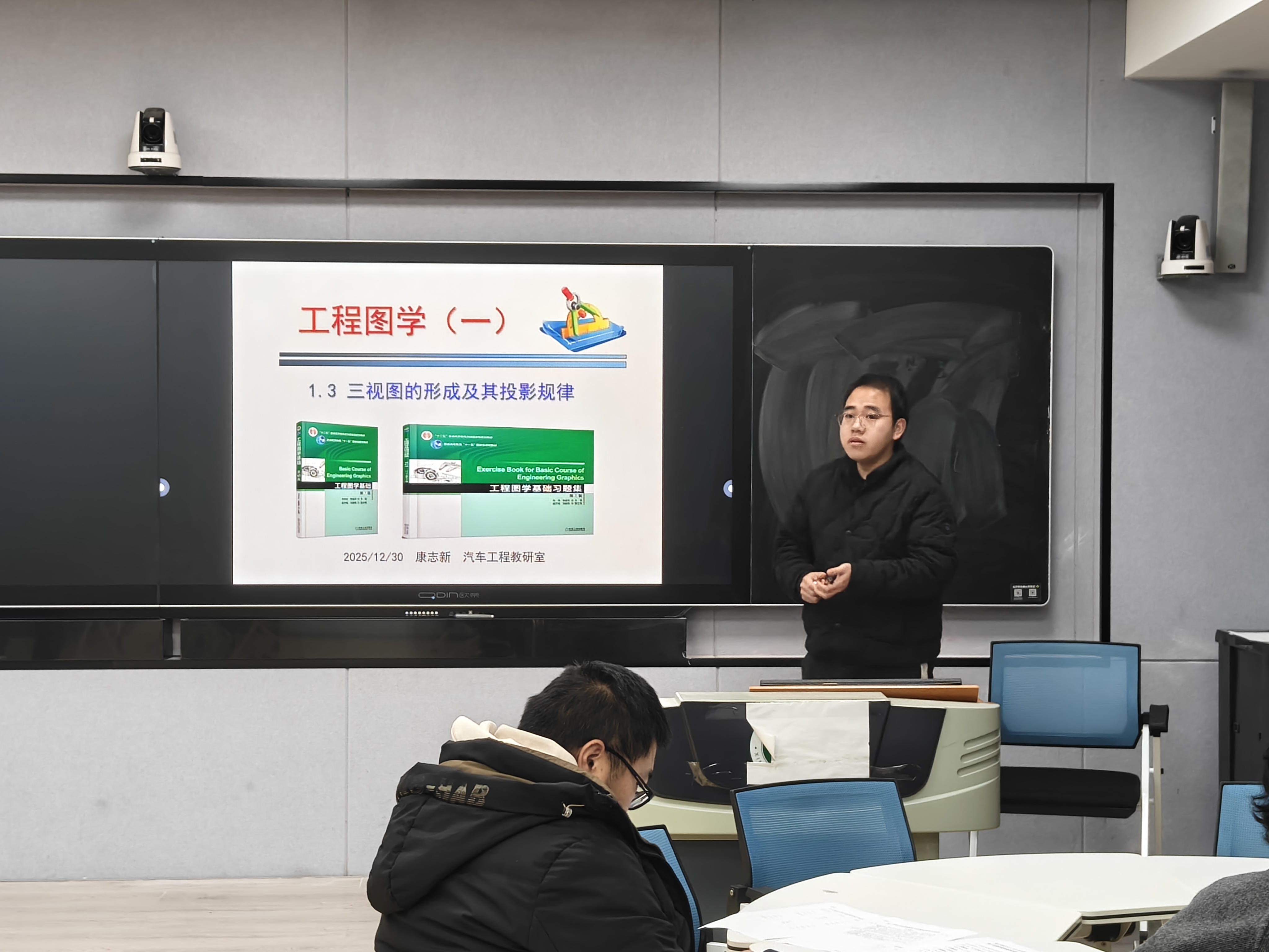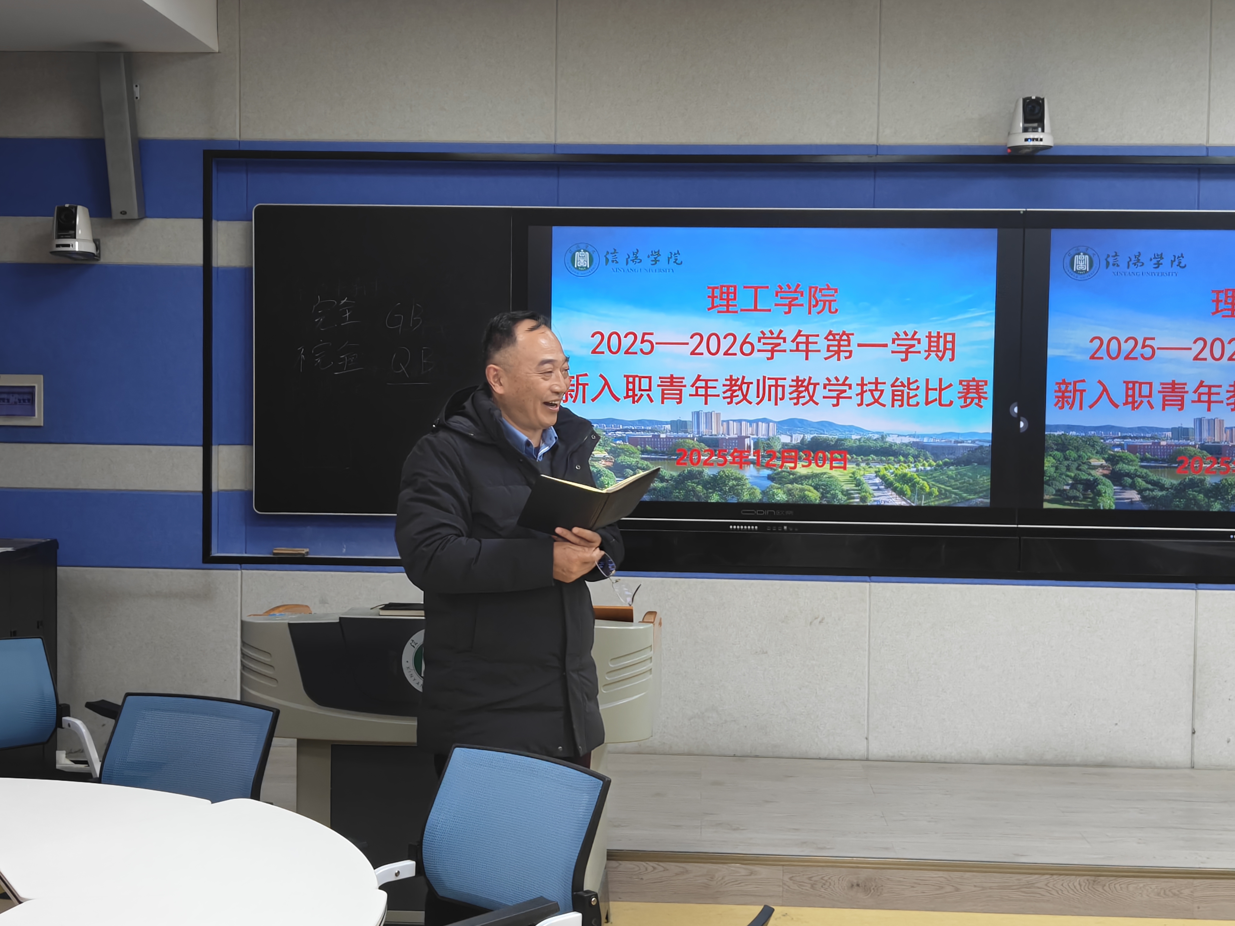 12月30日下午,理工学院在人文楼南楼103和113教室举行2025—2026学年第一学期新入职教师教学技能比赛。比赛邀请了校督导专家张小玉教授,机械电子工程教研室曹国廷、王秀丽教授,汽车工程教研室杜来林教授、王思满老师,大学物理教研室贾小平副教授担任评委。比赛分两组进行,分别由张小玉和曹国廷主持。