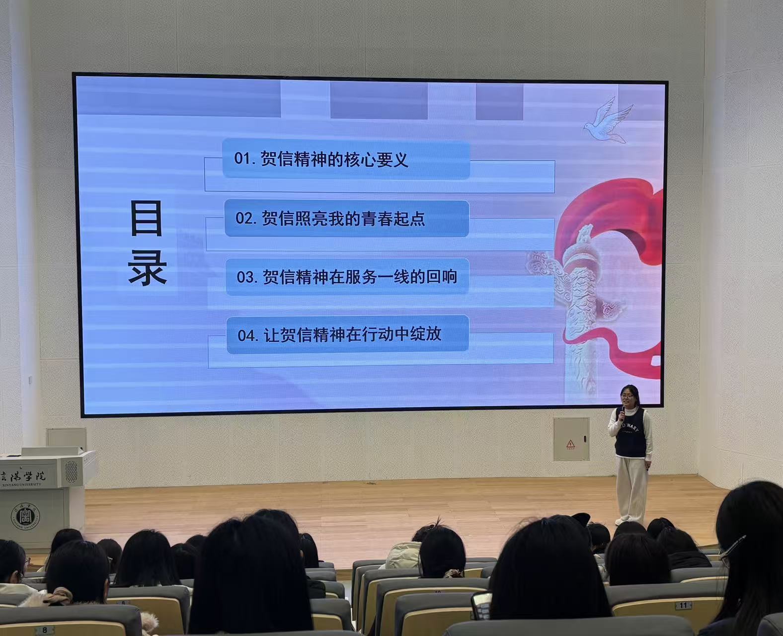 在贺信精神领学环节中,25心理本01班的乔雅文同学以《悟贺信深意,献志愿微光》为主题展开宣讲,从贺信的价值定位、实践路径、组织要求等维度,阐释了志愿服务作为社会文明进步标志的内涵,同时结合个人成长分享了“从关注自我到融入国家发展”的转变,让参会同学清晰把握了贺信精神的核心要义。在贺信精神学习交流环节中,25心理本01班的杨盼盼同学围绕《以贺信精神为帆,赴寒假实践之约》主题展开分享,她立足大学生的身份特点与实际需求,提出寒假社会实践的具体方向与可行方案,为同学们将贺信精神转化为实实在在的志愿服务行动,提供了清晰可落地的思路。