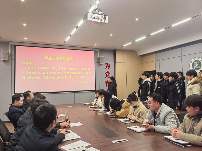 教学干事王亮对期末考试的考场纪律、学生考试资格的审查、考前复习及缓考相关工作进行了详细说明。他强调考生要安排好复习时间,做好复习规划,考试期间严格遵守考试纪律,服从监考老师安排,以良好的心态迎接考试。