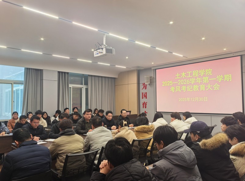 为进一步加强考风考纪教育,营造公平公正的考试环境,12月30日下午,土木工程学院在理工楼112会议室召开了2025—2026学年第一学期期末考风考纪教育大会。学院名誉院长鲍鹏、党总支书记徐远东、教学副院长杨子泉出席了会议,学院班子成员、全体辅导员、学生干部代表及各年级各班班长参加了会议。徐远东主持了会议。