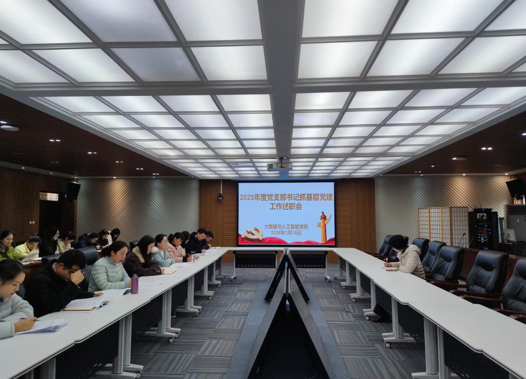 为深入贯彻落实新时代党的建设总要求,进一步压实党建工作责任,推动基层党组织全面进步、全面过硬,1月14日,大数据与人工智能学院党总支组织召开2025年度党支部书记述职评议会。党总支各委员、各师生党支部书记、副书记及各委员参加会议,会议由党总支书记高昌慧主持。
